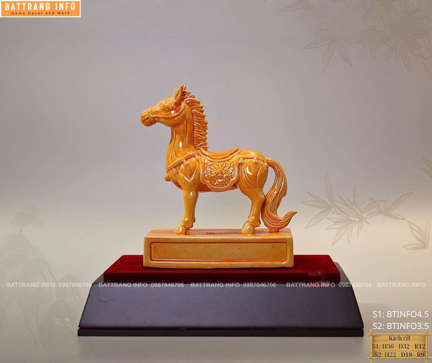Sứ Bát Tràng nổi tiếng với độ bền cao, nước men sáng bóng và kỹ thuật chế tác tinh xảo. Khi kết hợp cùng vàng 24k, linh vật ngựa trở thành một tác phẩm phong thủy cao cấp, mang giá trị trưng bày và giá trị tâm linh vượt trội: