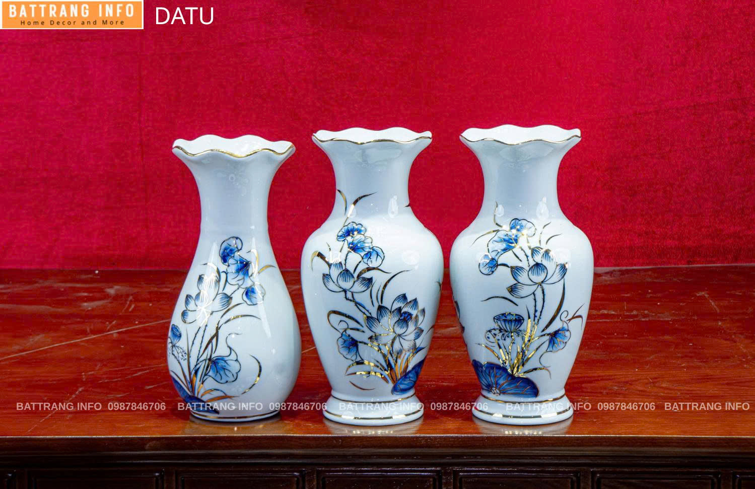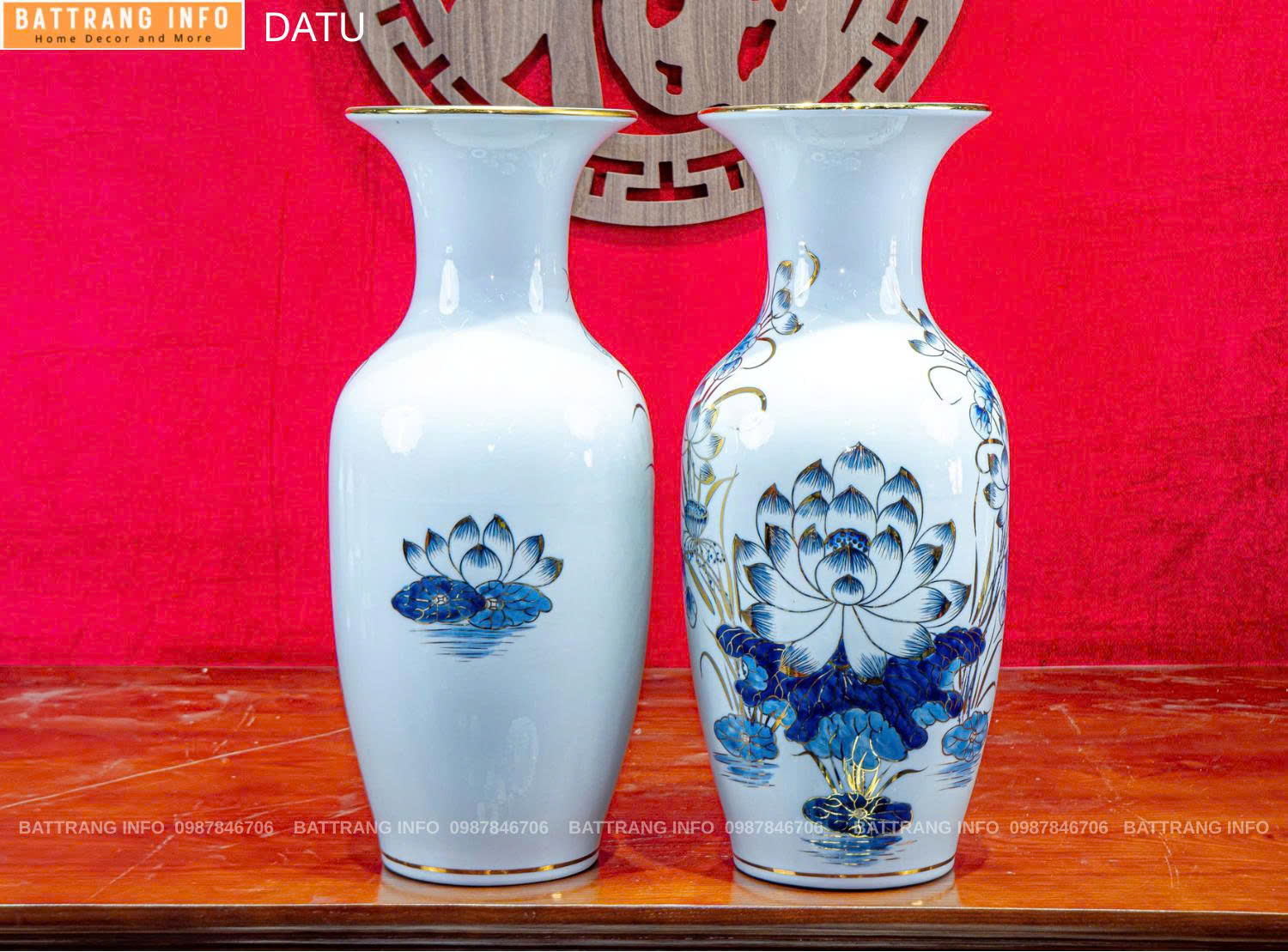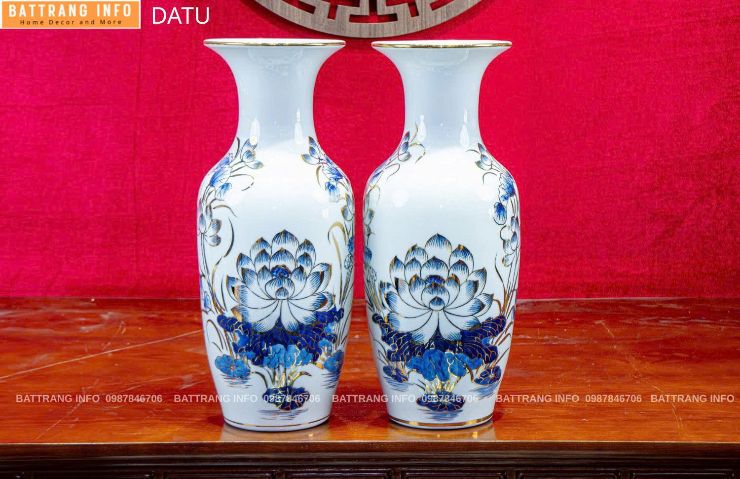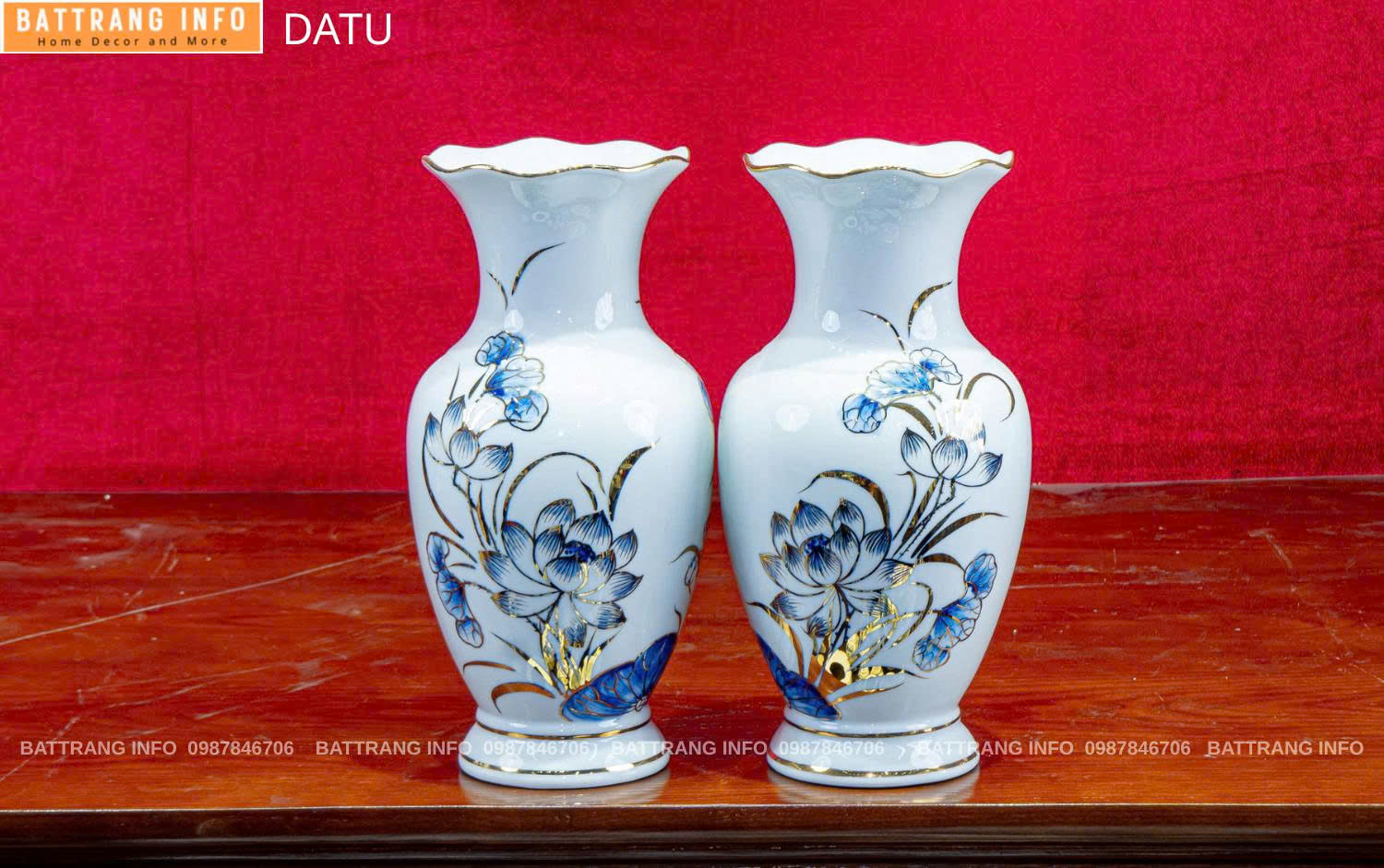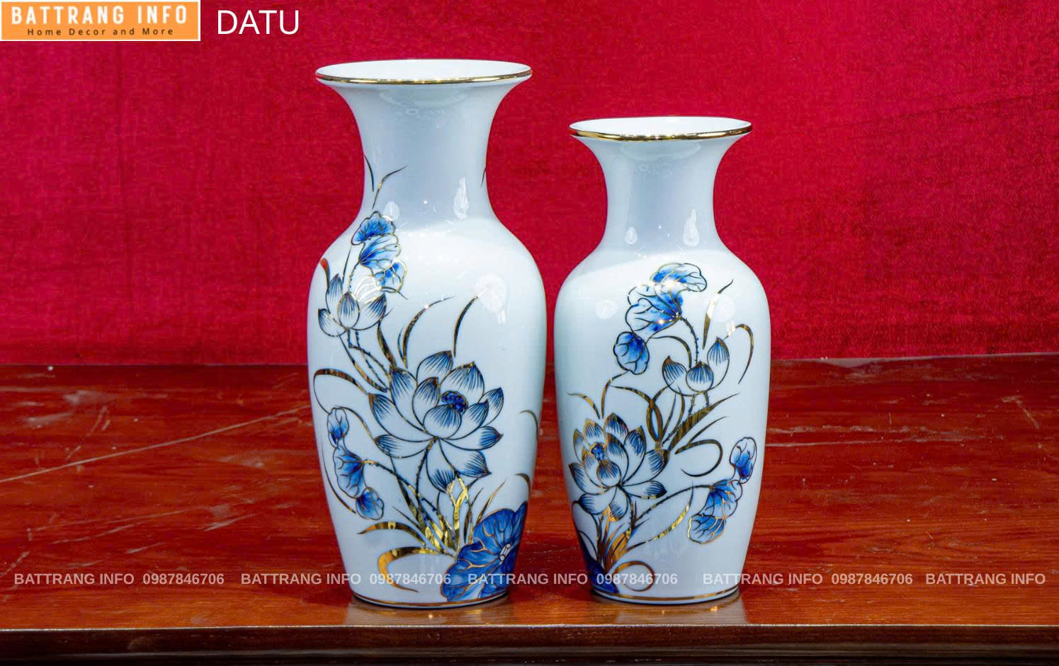 Lọ Hoa Sen Miệng Tròn Vẽ Vàng 24K Cao Cấp Bát Tràng