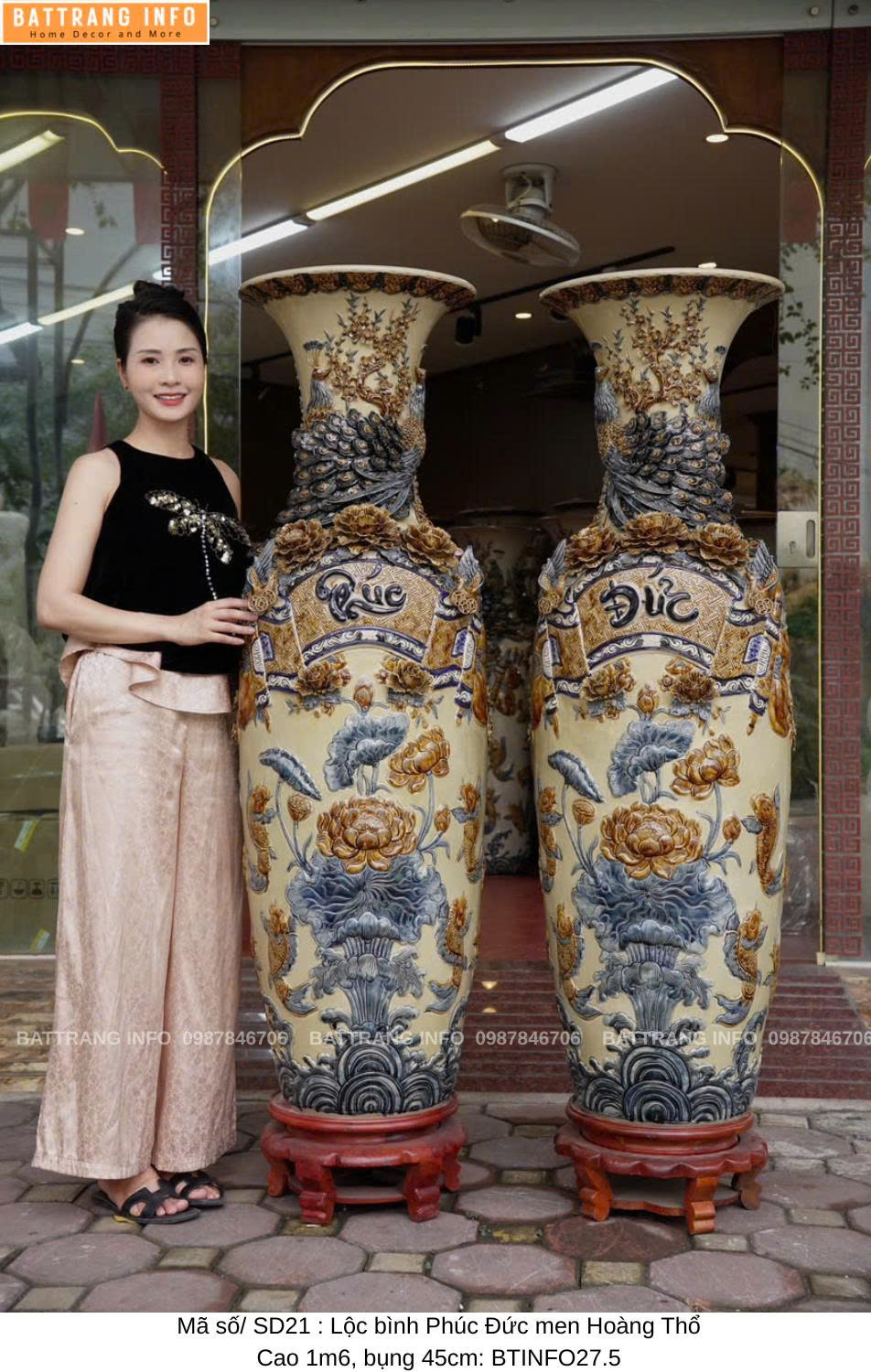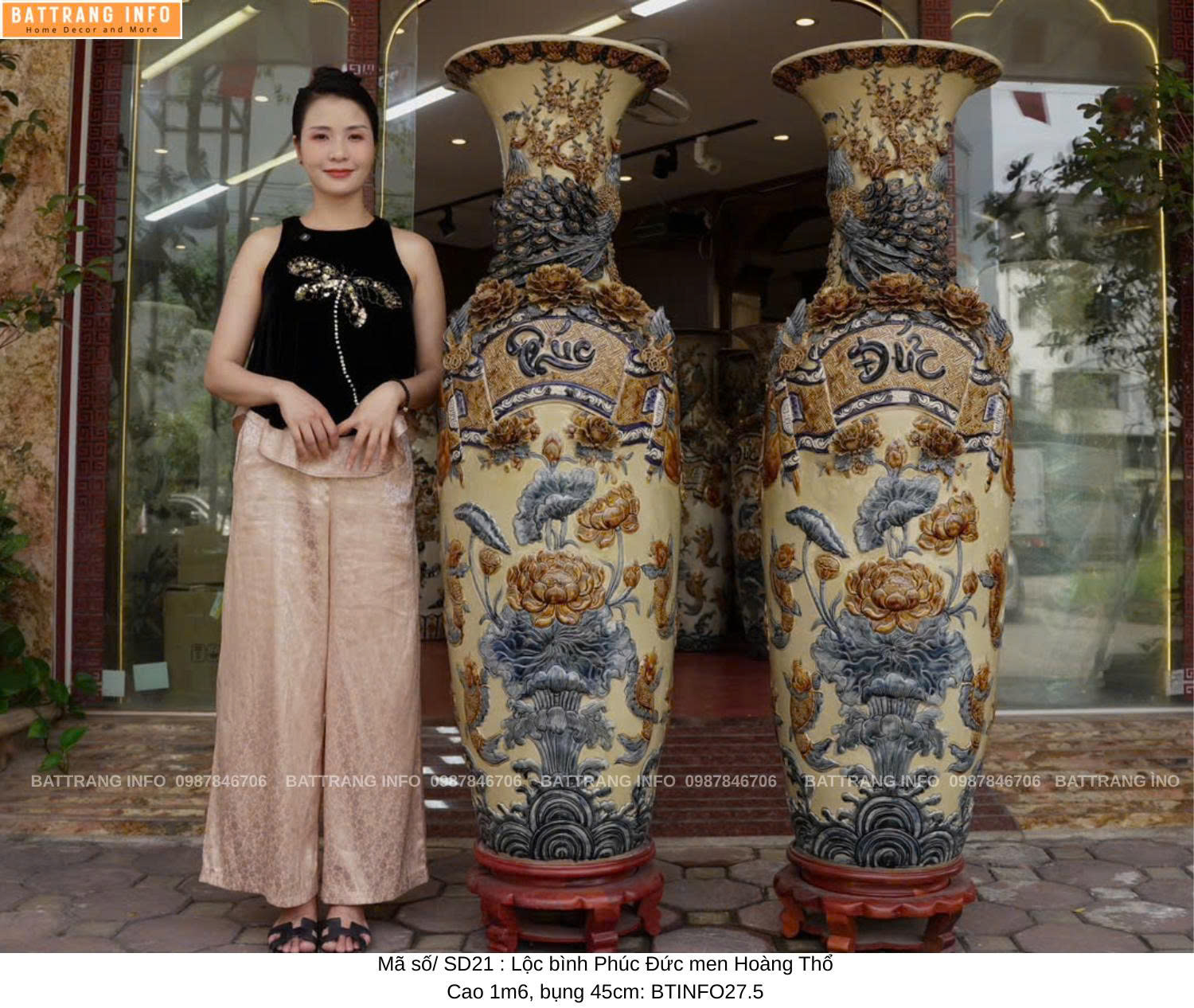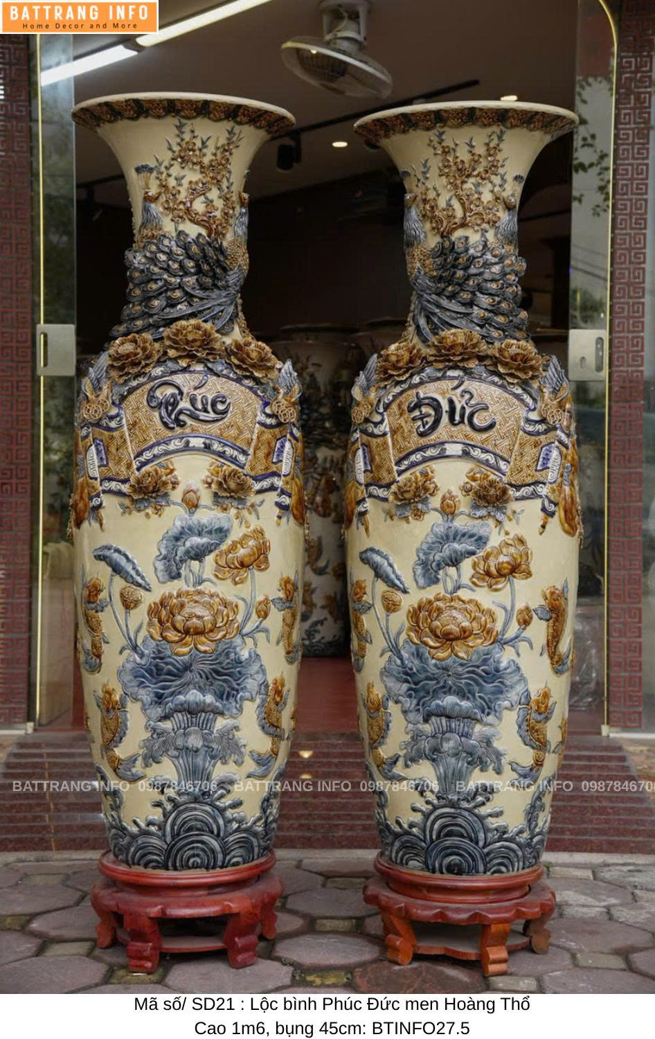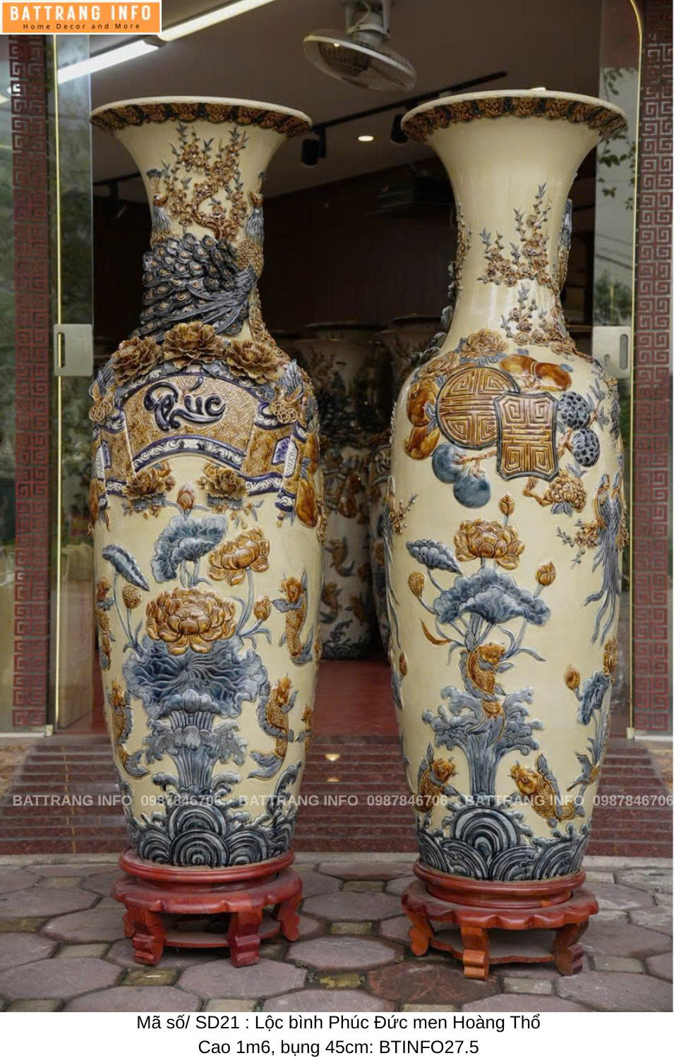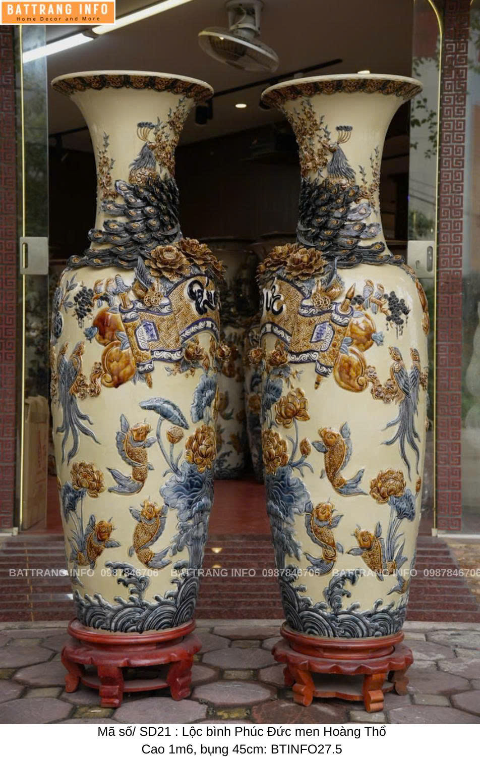 Giá Bán Lộc Bình Phúc Đức Men Hoàng Thổ Bát Tràng Giá lộc bình Phúc Đức men hoàng thổ phụ thuộc vào kích thước, độ chi tiết họa tiết đắp nổi và yêu cầu cá nhân hóa. Quý khách vui lòng liên hệ trực tiếp để được báo giá tốt nhất và tư vấn miễn phí.