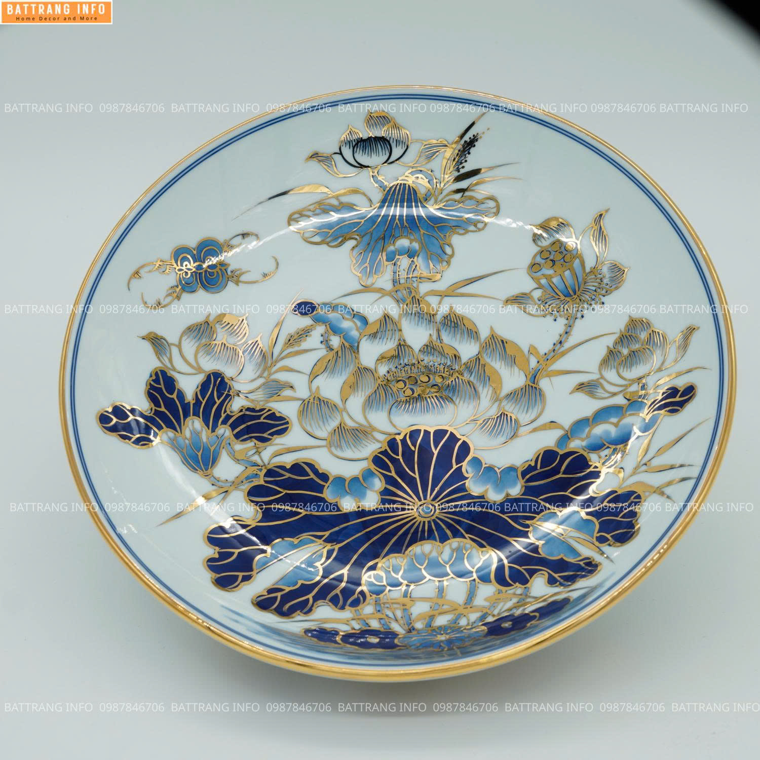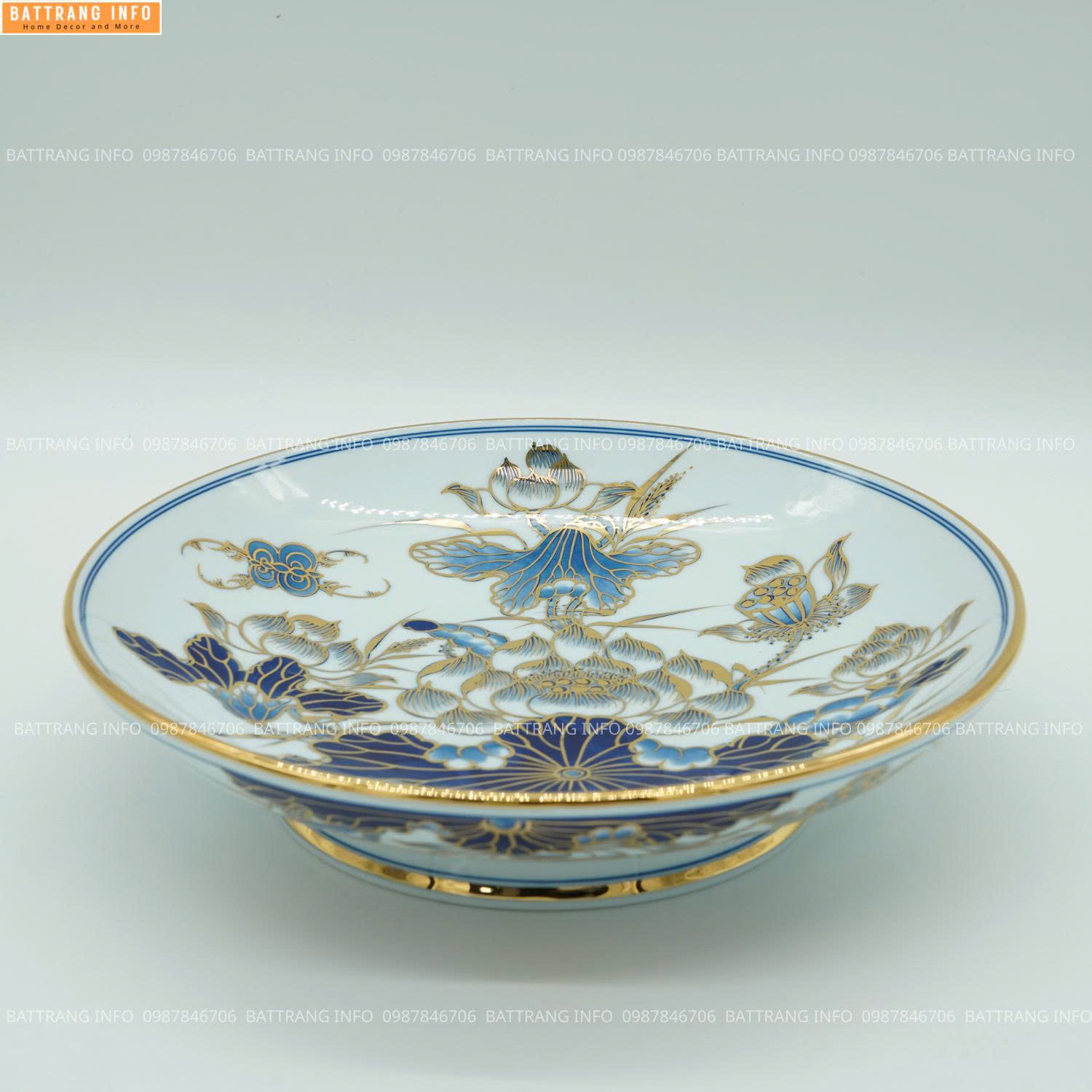 Mâm Bồng Men Lam Vẽ Vàng 24K Cao Cấp Bát Tràng P14