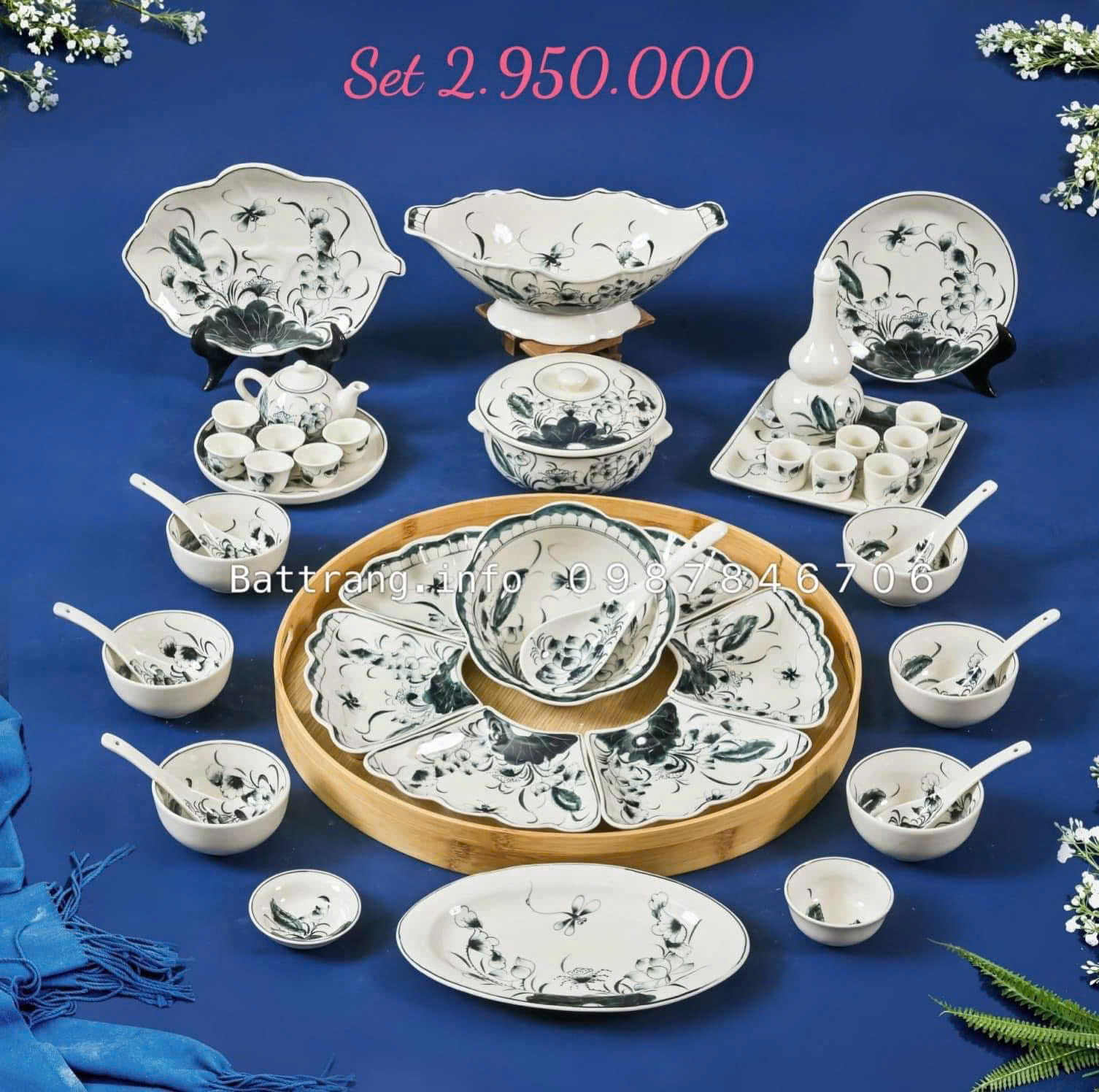Sét Bát Đĩa Hoa Mặt Trời – Mâm Cơm Cúng Rằm Tháng Giêng Cao Cấp Bát Tràng - P45