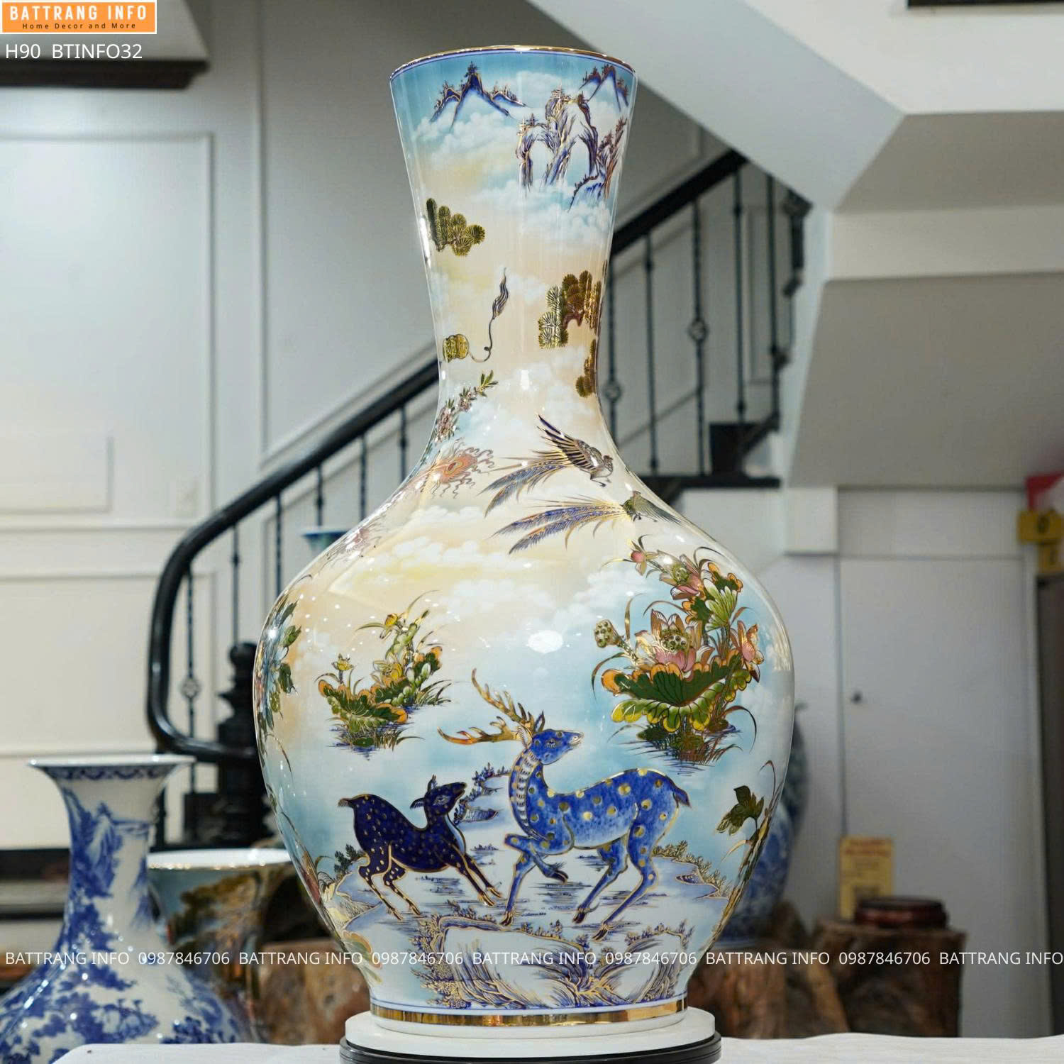 Tỏi cao 90cm vẽ tay Công Danh Phú Quý vẽ vàng 24K cao cấp Bát Tràng – Đỉnh cao nghệ thuật gốm sứ phong thủy