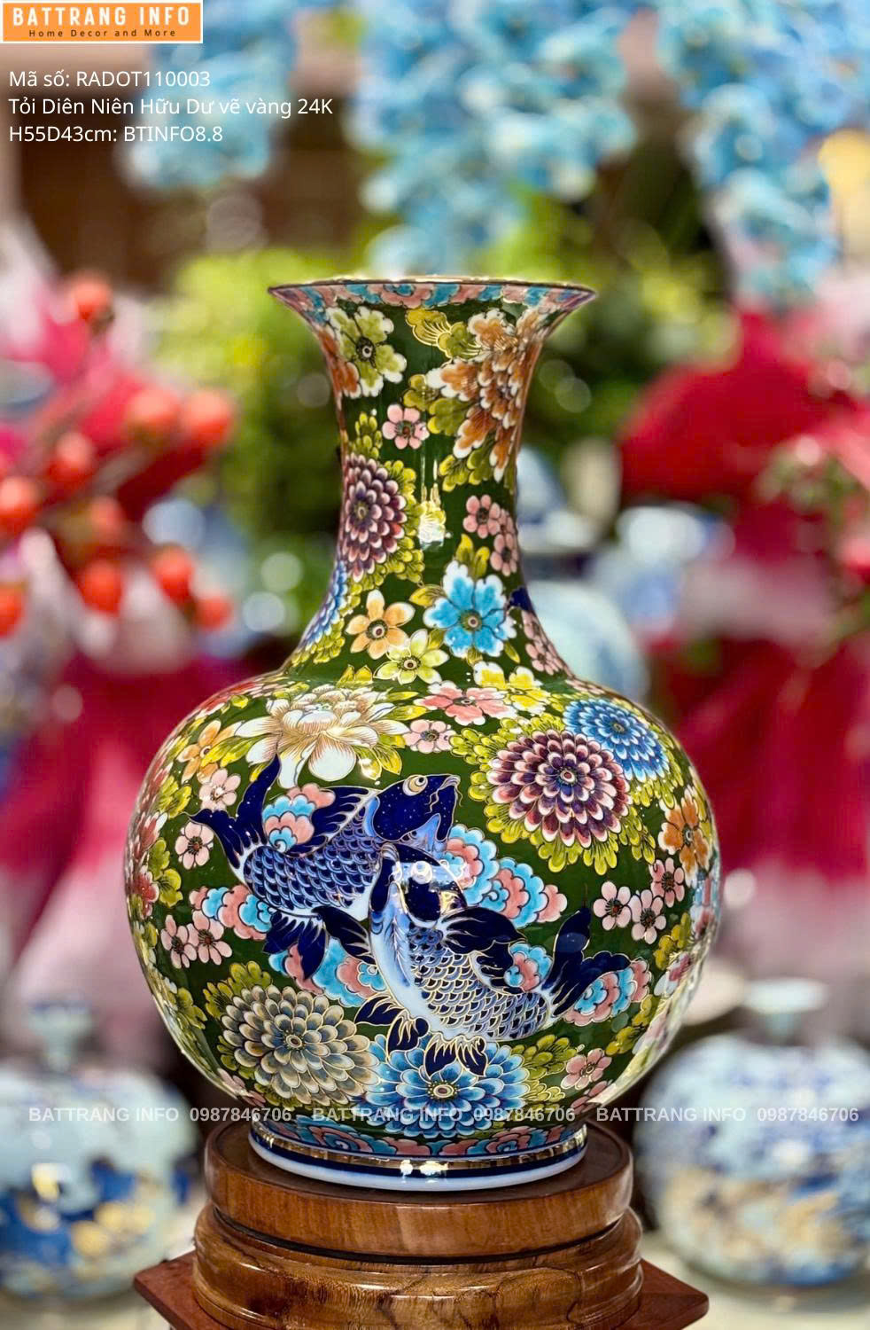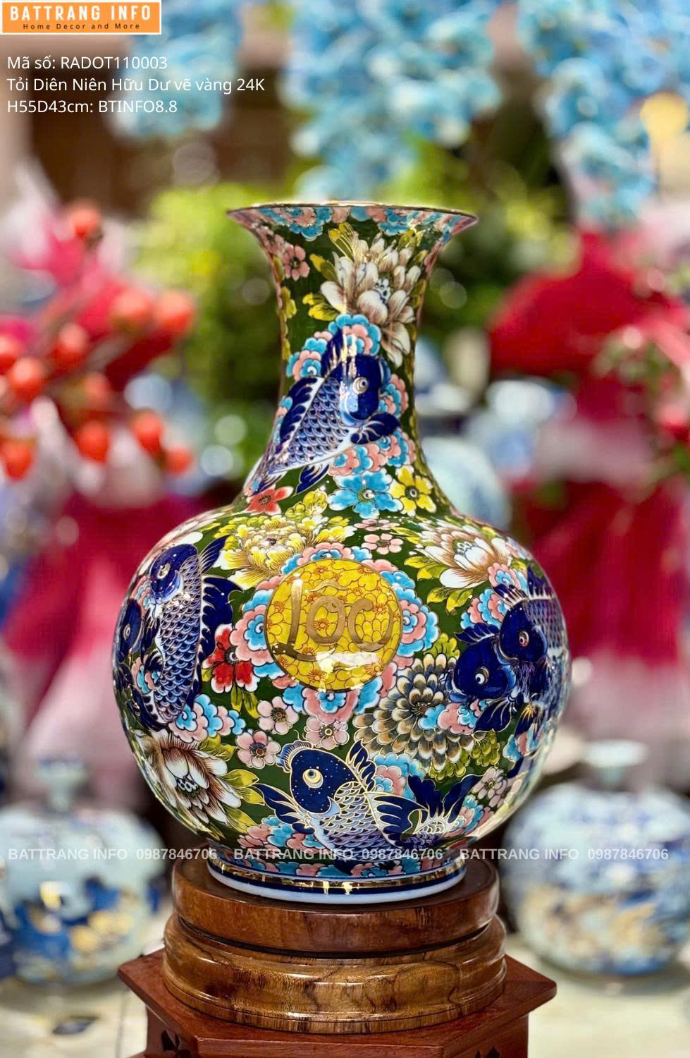 Tỏi Diên Niên Hữu Dư vẽ vàng 24k cao 55cm – Gốm sứ Bát Tràng cao cấp