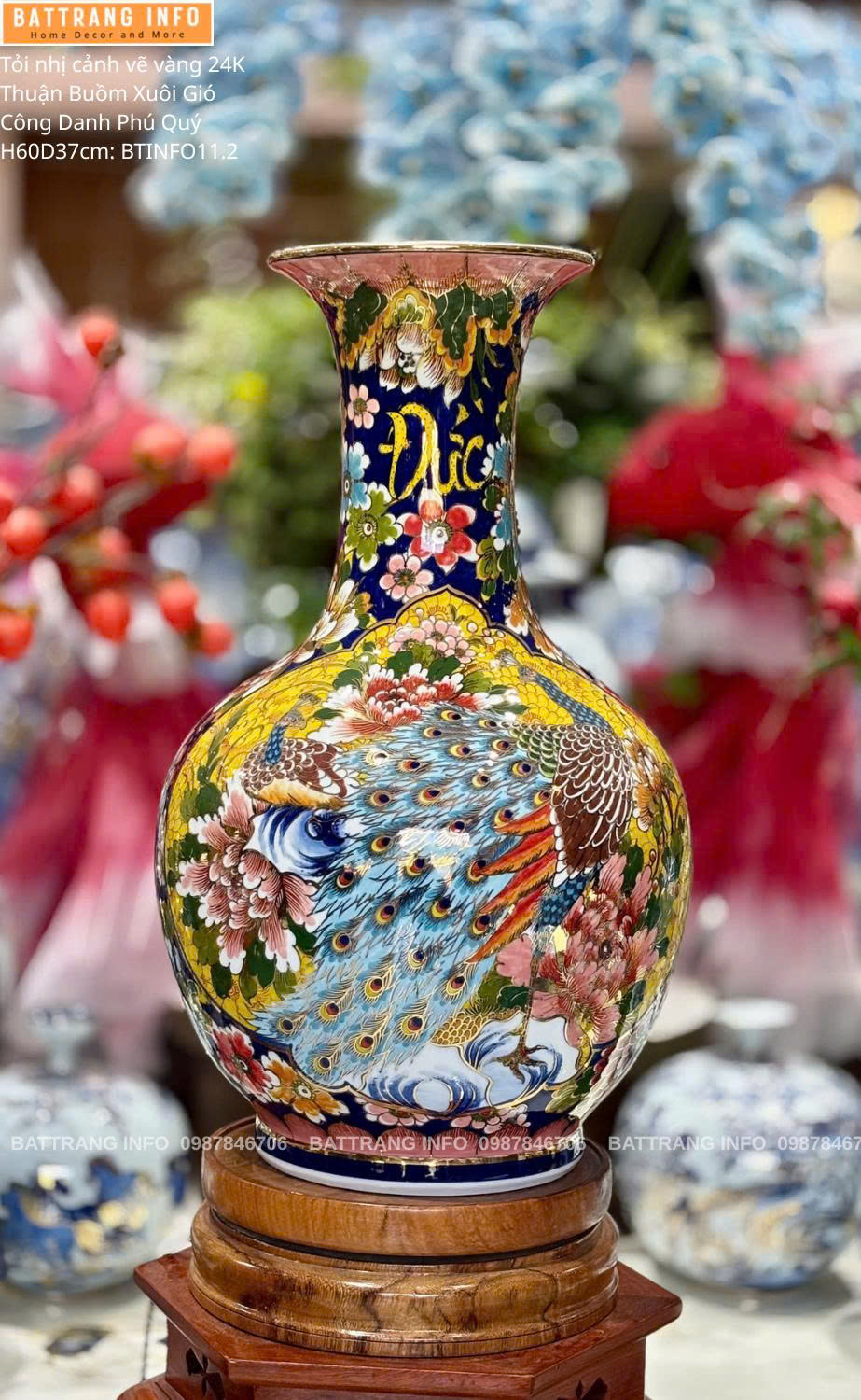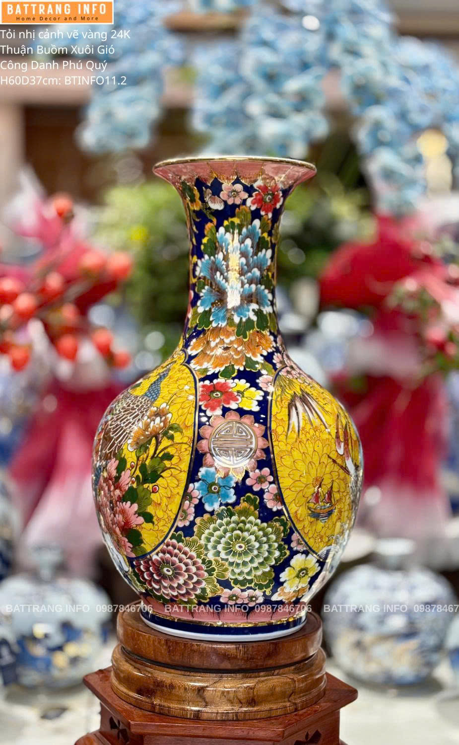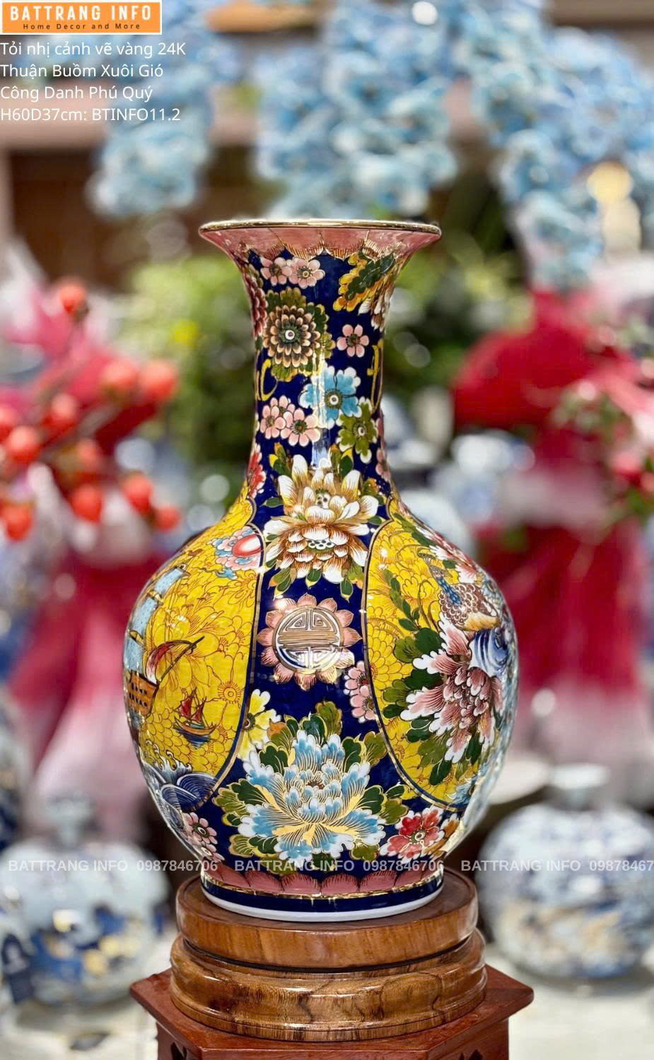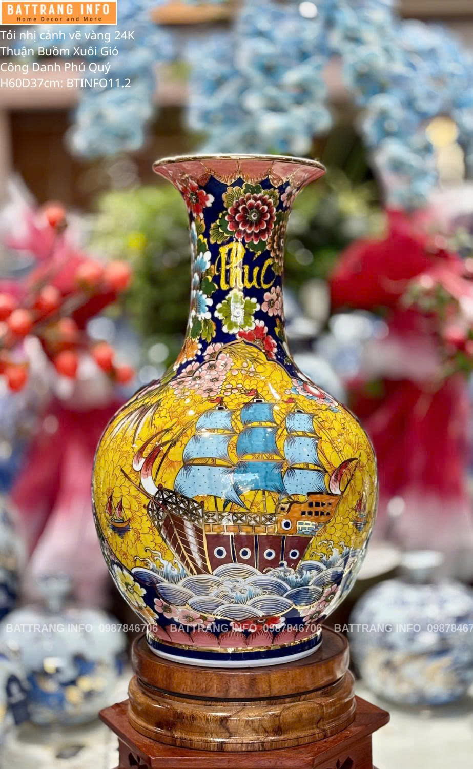 Tỏi Tứ Cảnh Vẽ Vàng 24K "Thuận Buồm Xuôi Gió & Công Danh Phú Quý" Cao 60cm – Bát Tràng Cao Cấp