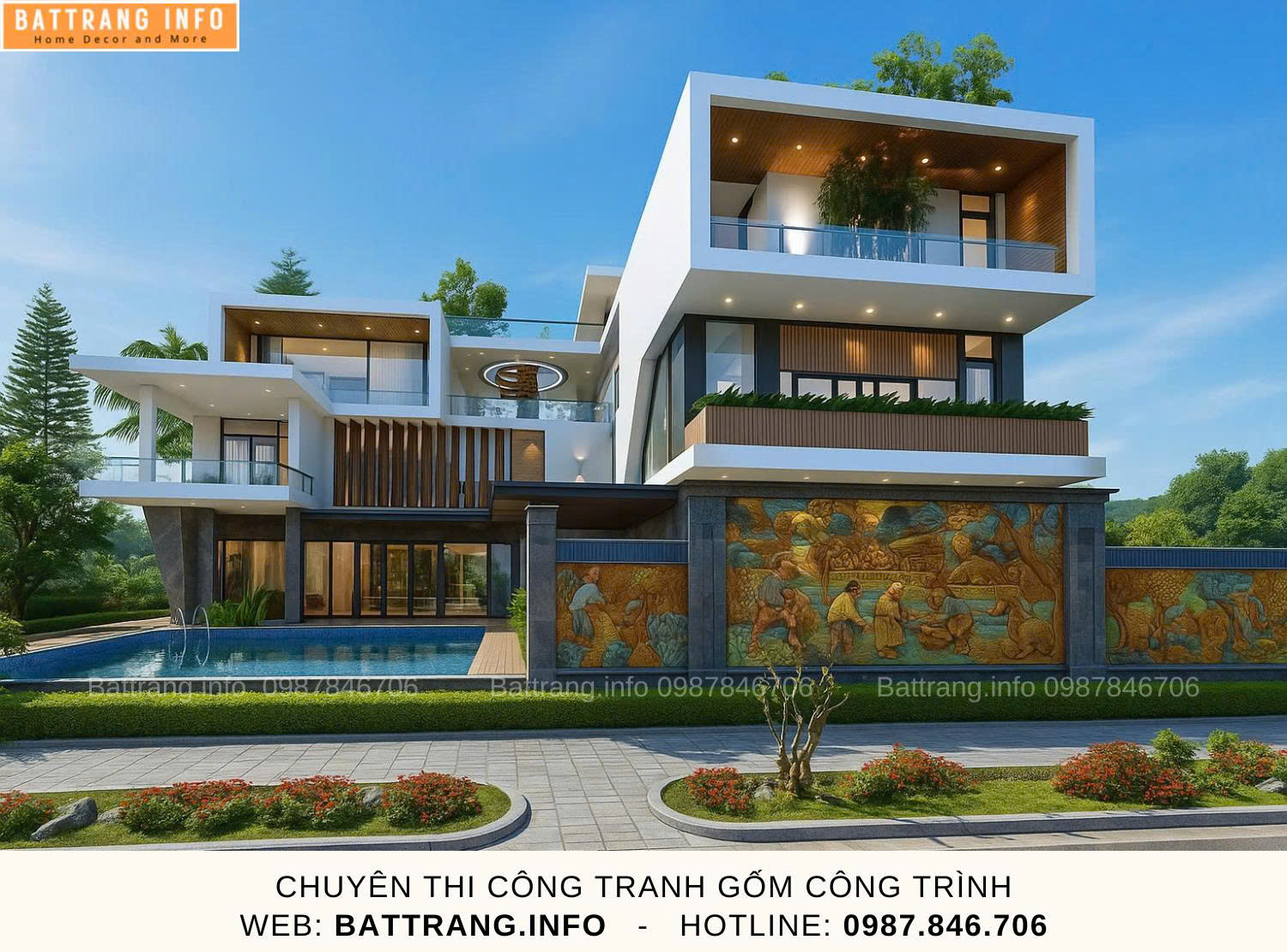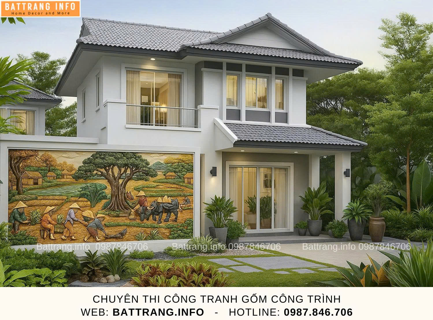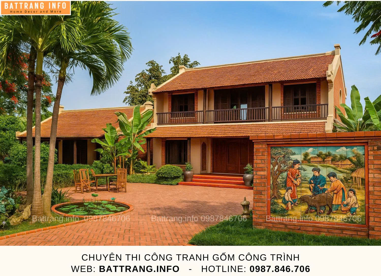 Trong đó có Gốm sứ Battranginfo chuyên thi công và thiết kế tranh gốm ghép mảnh trang trí sân vườn. Bạn hãy liên hệ ngay để nhận tư vấn miễn phí và thiết kế mẫu thử cho sân vườn của bạn!