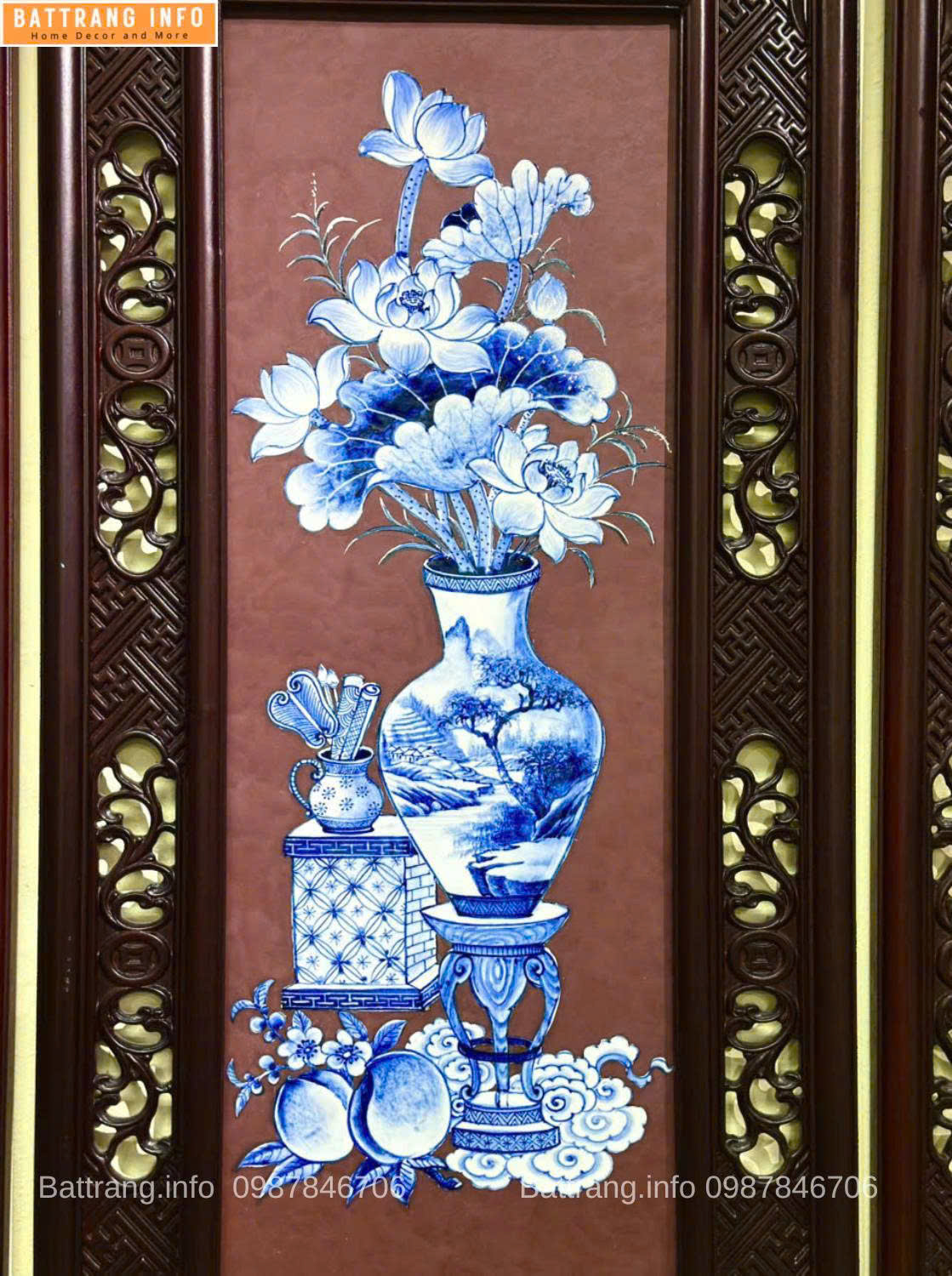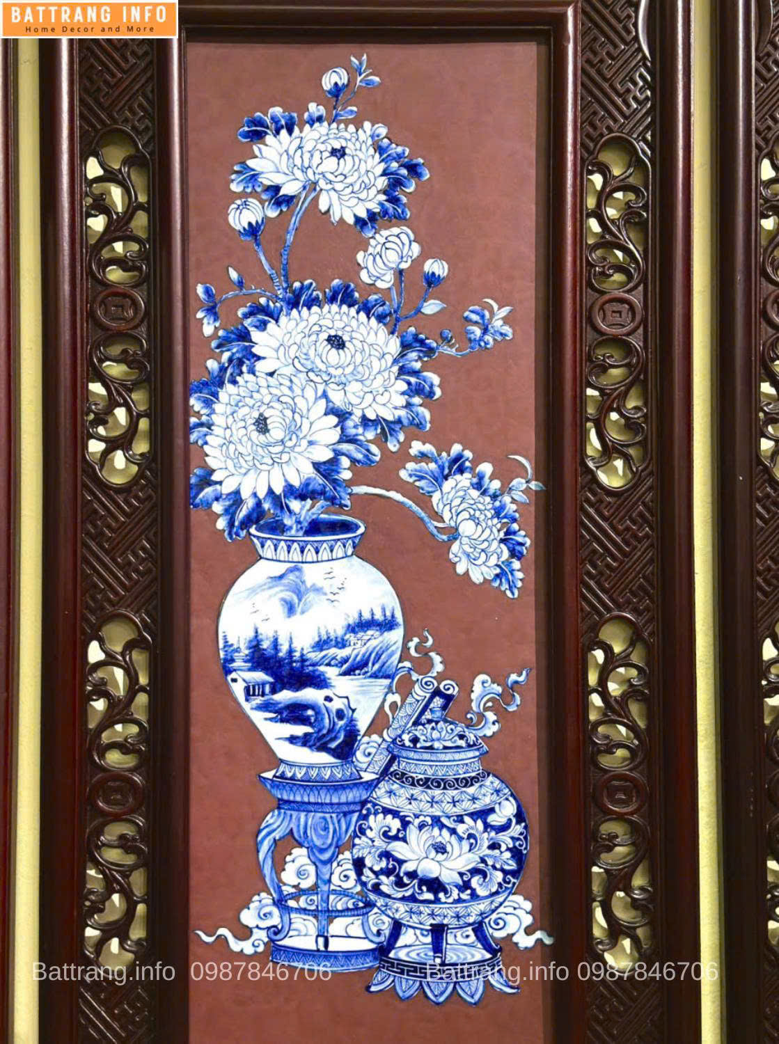 Bạn có thể mua tranh Tứ Quý Cổ Đồ khung gỗ gụ 97x48 cao cấp Bát Tràng tại: Gốm sứ Battrang.info